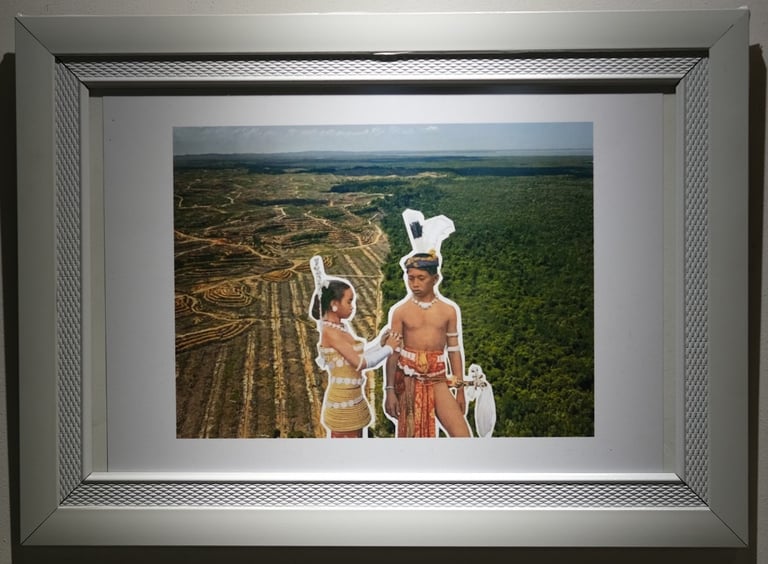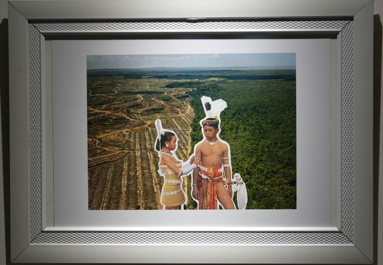 Karya ini menyoroti penderitaan masyarakat adat yang, meskipun menjadi penjaga awal wilayah ini, menghadapi pengusiran dan kehilangan tanah leluhur mereka. Pemerintah nasional mengklaim sebagian besar hutan hujan, sering kali menjual tanah adat kepada perusahaan untuk dieksploitasi. Karya ini menekankan bagaimana tanah-tanah yang penting bagi kelangsungan hidup masyarakat adat secara sistematis dirampas, mengganggu cara hidup tradisional mereka.