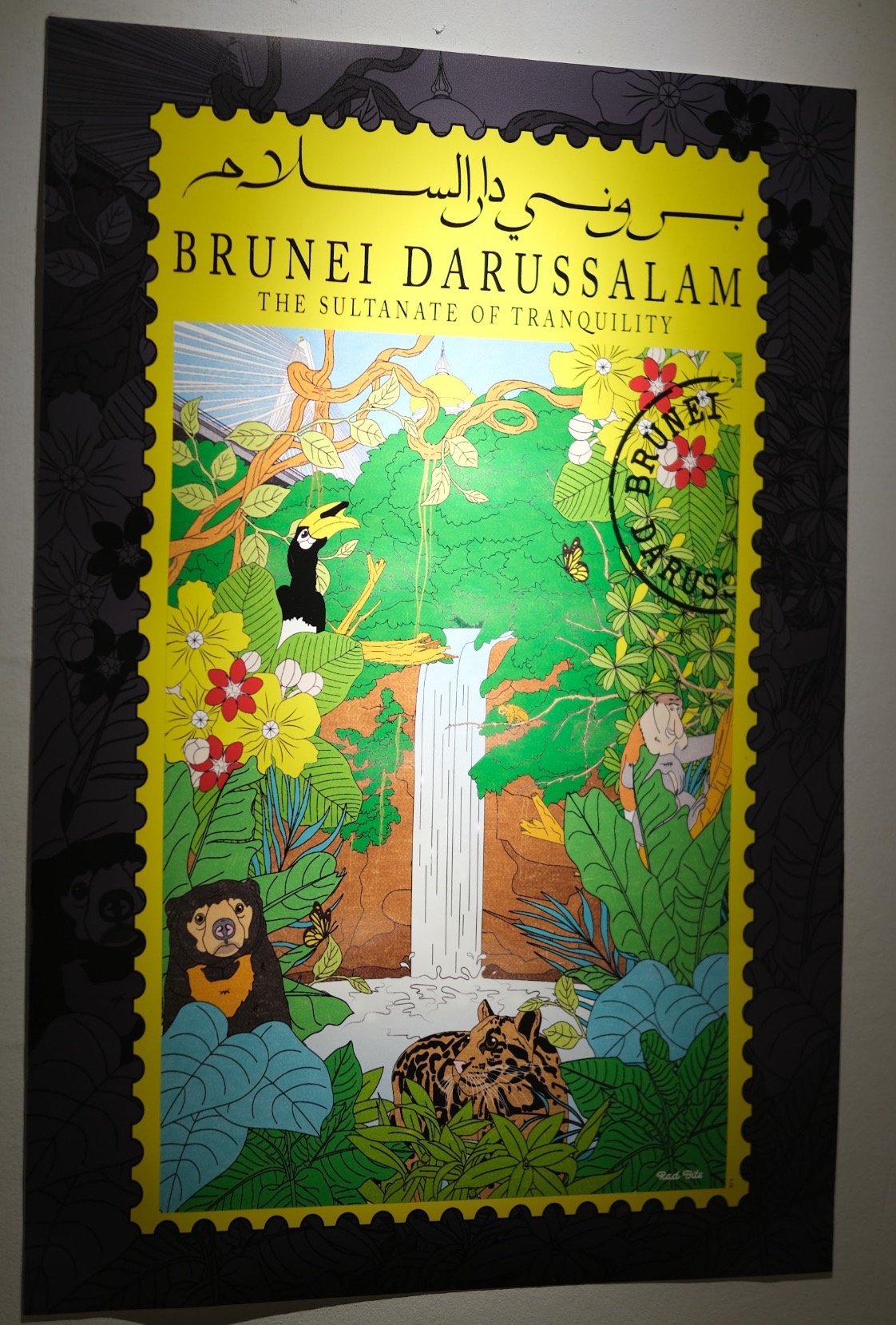 Brunei Darussalam is often described as "The Abode of Peace," and this artwork reflects that spirit by blending development with natural landscapes. From the flowing geometry to the delicate presence of endangered species within the greenery, every detail is a meditation on balance—between heritage and progress, stillness and movement, the sacred and the wild.