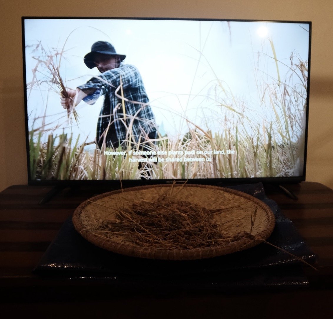 The project draws from traditional rice farming methods and involves communal labour, highlighting the role of collective work and local knowledge in managing land sustainably. Over its lifespan, JAMIN has also become an evolving record of transformation— chronicling the construction of new roads and its impact of land use, and the increasingly erratic weather patterns brought on by climate change. As yields fluctuate, landscapes shift, and community members focus on other economic activities, the work asks: what has been guaranteed, and at what cost?