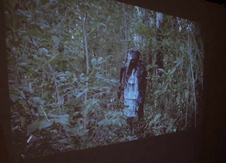 From this, the artist imagined a fictional character, “Ombar”, a figure who collects latex from neglected rubber trees. In the narrative, the local community observes Ombar only through the traces left behind: the thin trails of white latex stretching from tree to tree. This conceptual approach reflects on absence, loss, and the subtle ways communities engage with their environment, using fiction to illuminate social and ecological realities.